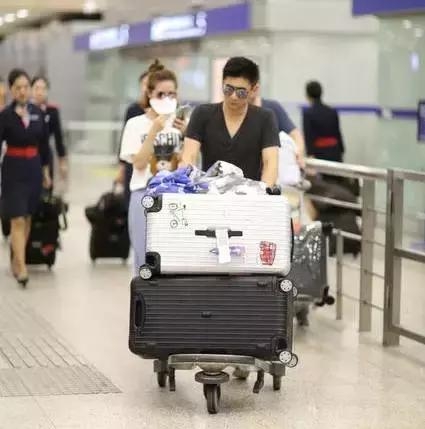 一般画风就是,吴奇隆推着几个大箱子,诗诗放慢脚步跟在旁边。