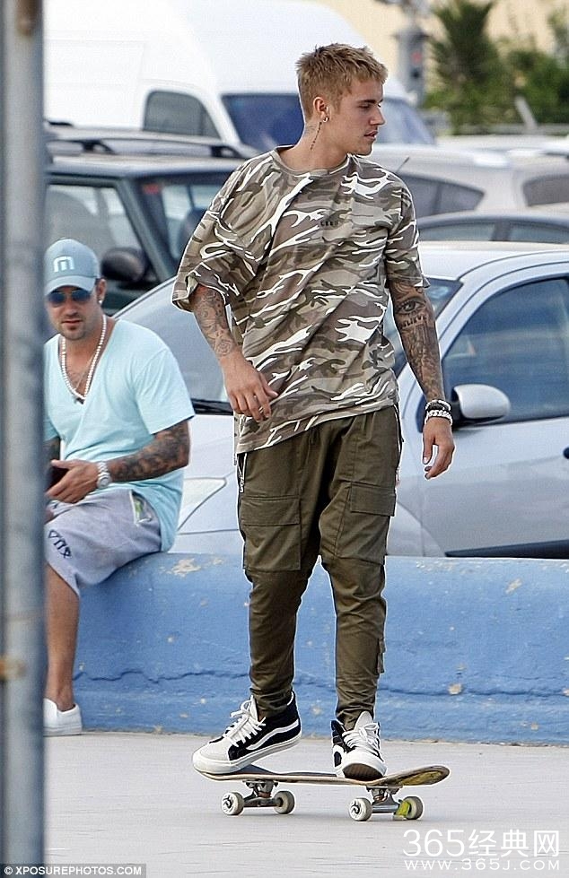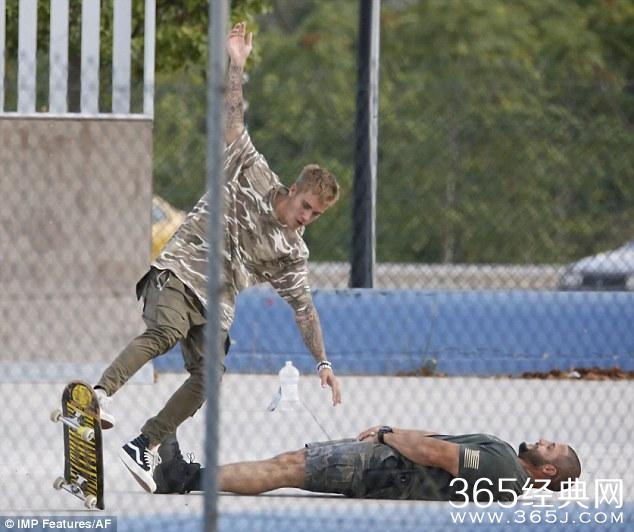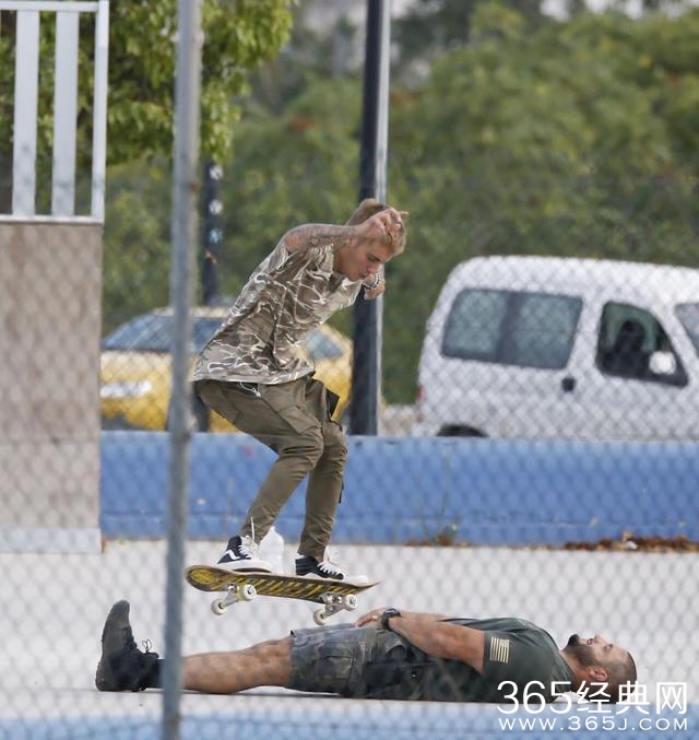 最经典的莫过于就是这次小贾斯汀在西班牙玩滑板时,要这位保镖躺下来当作人体障碍物,只见这位保镖还是不免有点紧张,将双手护住下半身的重要部位。