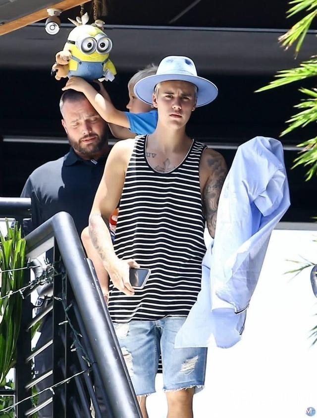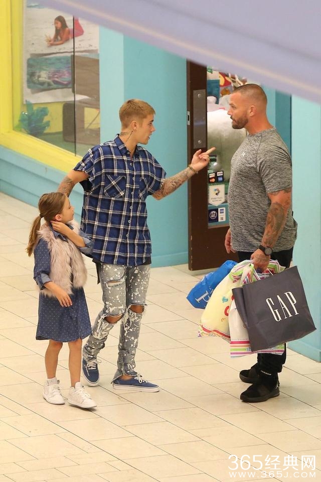 小贾斯汀跟妹妹出门逛街时,帮忙提购物纸袋是基本的。