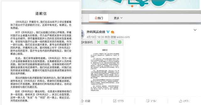 面对观众的质疑,正午阳光拿出了国剧少有的担当,《外科风云》官微近日发了一条“道歉信”,表示“对于出现的医学、医疗专业性内容的质疑和指正,我们都虚心接受。”这个锅,正午阳光大方地背了。