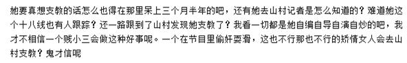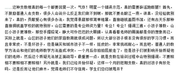 有的说她是刻意炒作博出名,有的说她只是把支教当成一种公益假期,还有的说她是为了摄影和写作去山区取材,更理智一点的则说她的出发点是好的,但这种支教方法不对,因为临时换老师孩子们适应不了学习方法,短时间内孩子们根本学不到什么东西。