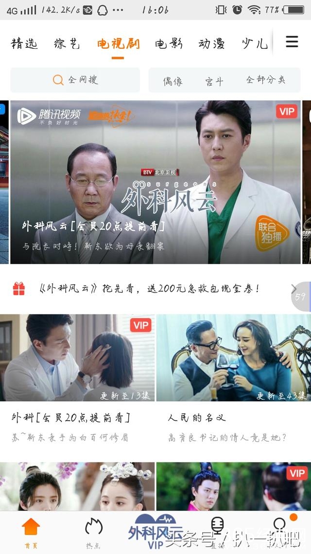 据小编调查,腾讯视频APP里面还是很给面子的,电视剧主推《外科风云》