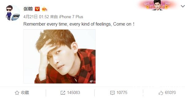 而近日,张翰深夜在微博发表了一段非常深感的话:“Remember every time, every kind of feelings, Come on”,翻译成中文的话那就是:“记得每一次,每一种感觉,加油!”。从这段深文来分析的话,张翰有可能是想起了前女友郑爽了。