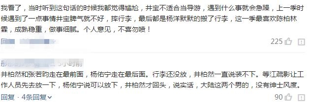 而作为新一季的导游井宝这时却惨遭被黑?原因竟是觉得装逼太过而且脾气不好?