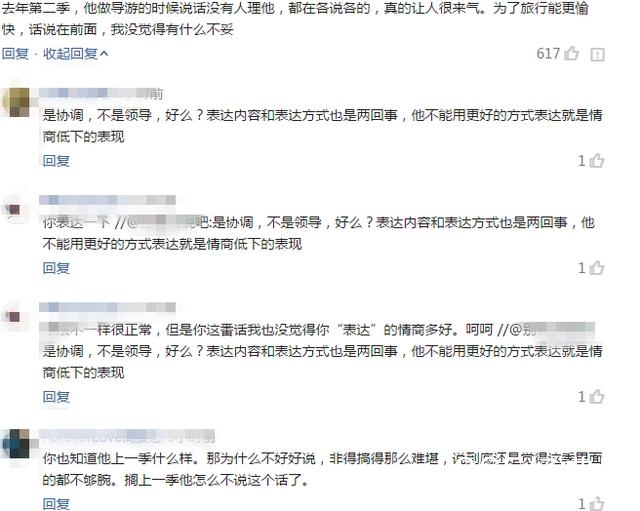 而井柏然继任导游之后被扣上“无能”的帽子所说的一大段话却有网友觉得装逼太过,有点虚。