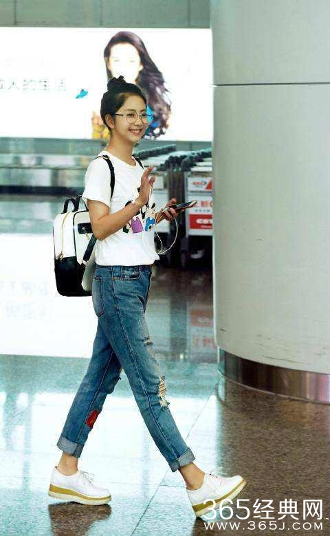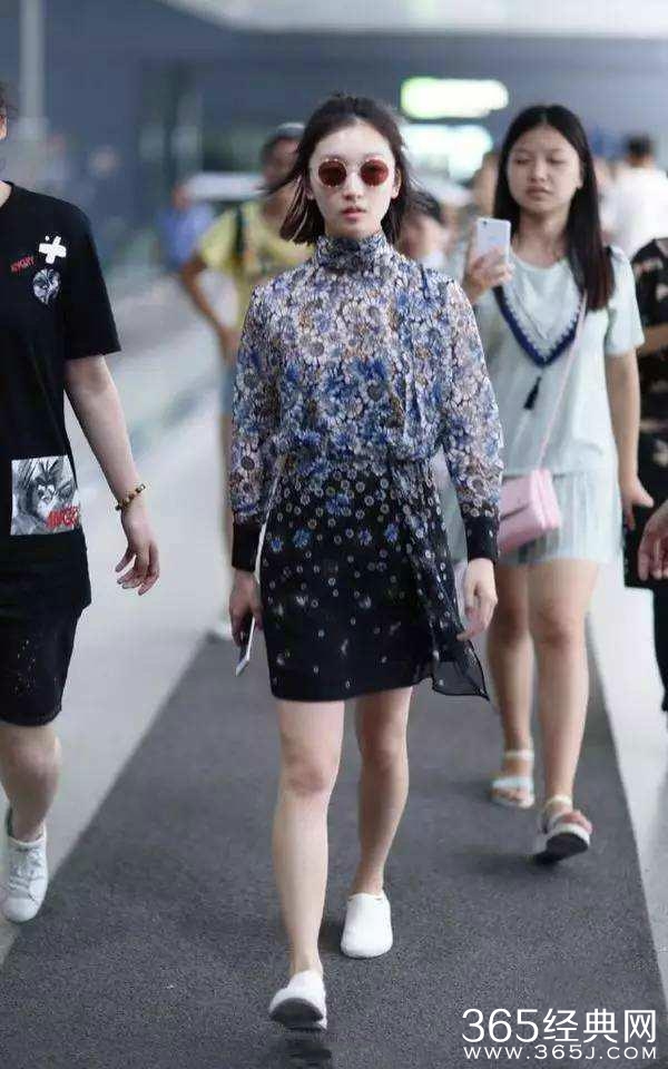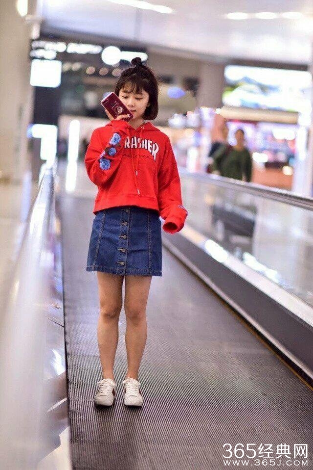 可赶飞机匆匆而过的周冬雨是这样的,没了P图没了高跟鞋,海拔没了,修长的筷子腿也变成了接地气的小短腿。
