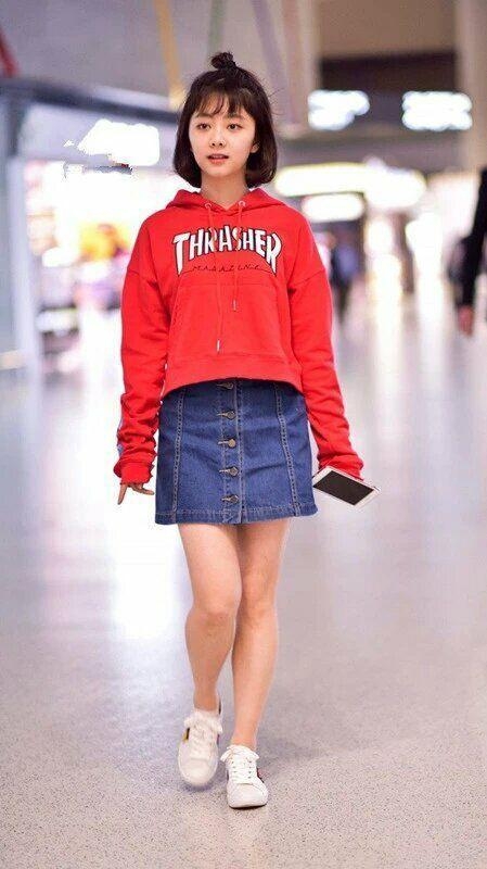丸子头搭配短款卫衣,下身穿上牛仔短裙,脚上穿上白色帆布鞋,谭松韵看上去根本不像是一个已经27岁的女人,而是颜似17岁的花季少女。