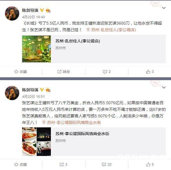 陈剑还大言不惭地表示:支持王健林凌迟张艺谋3600刀,让他永世不得超生!张艺谋不是已死,而是已挂!