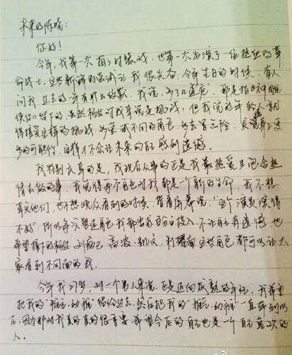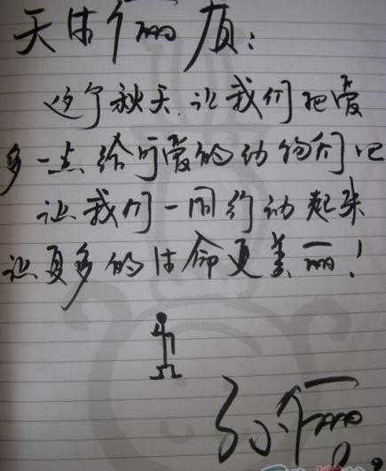 见过韩寒的字迹,真心觉得这手字迹虽然难以看懂写的是什么,但是自有一股不羁痞气在其中,果然是文化人啊。这得堪称是书法了吧?
