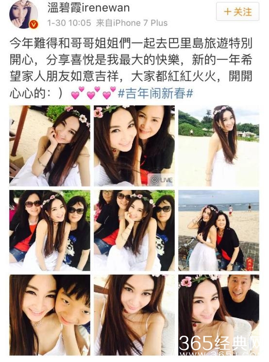 同样有两个姐姐的还有不老女神温碧霞,今年年初温碧霞微博晒出与哥哥姐姐国外度假的照片吸引不少目光。