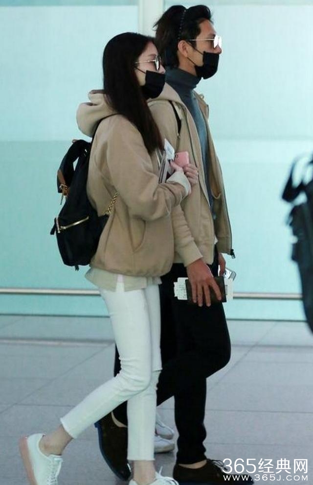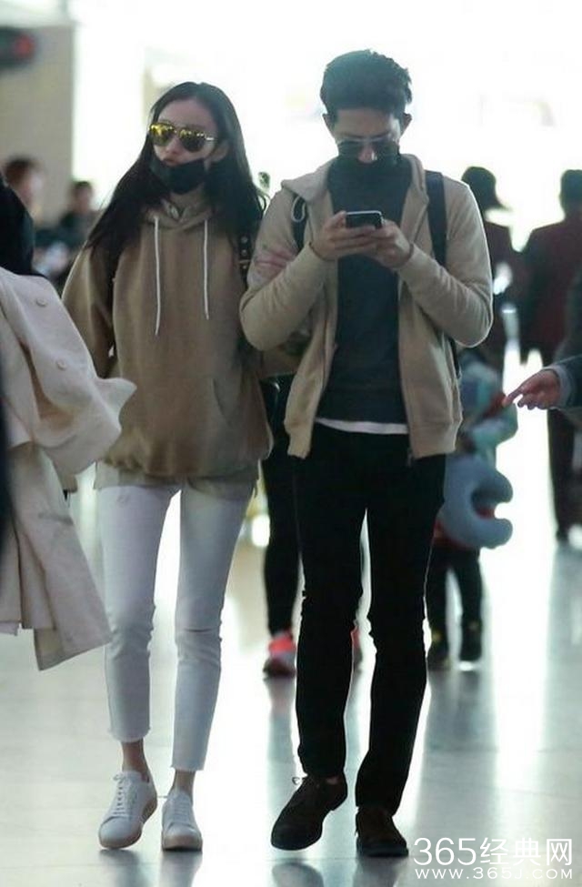 前脚刚在电视上播出了恩爱画面,后脚俩人就罕见地合体现身机场。戴着同样黑色口罩和两人也同样穿着驼色的情侣帽衫,同样背着双肩背。