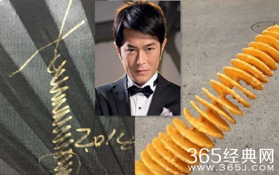 其实说到签名,前面的跟古天乐相比那简直就是小巫见大巫,因为古天乐的签名,与其说是签名,倒不如说是街头流行小吃——薯片串“旋风土豆”。
