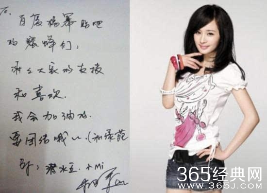 看杨幂的签名,也是“基本靠猜”。这也就是跟照片放在一起,要不真认不出来啊。
