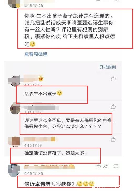 不过群众的双眼是雪亮的,因为前段时间卓伟疑似去泰国做试管婴儿,所以有网友说道:“生不出孩子是有道理的”。