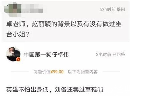 有网友在微博提问“第一狗仔”卓伟,赵丽颖有没有当过坐台小姐?