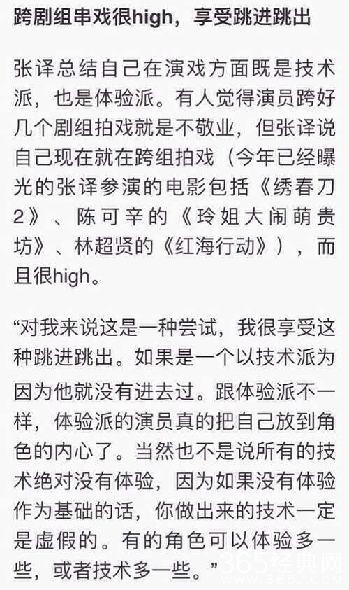 对于自己的演技,张译可以说是非常自豪了,认为演员轧戏其实是对演技的一种挑战,自己很享受这种过程等