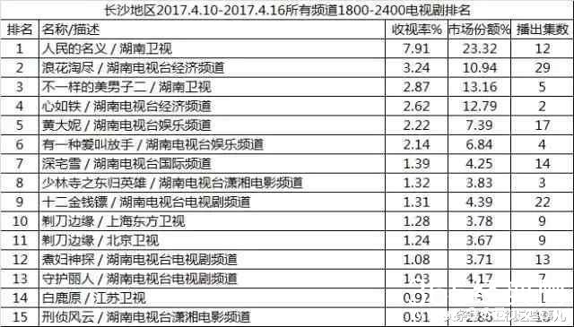 《人民的名义》收视爆棚,4月18日两集破5,又创新记录。在下面的五大城市中,该剧均排名前五,在长沙、杭州、上海等地,收视排名第一,实力强劲。因为浙江卫视、上海东方卫视也是一线卫视,其地面频道实力也不容小觑,而湖南卫视能在当地晚间档排名第一,猛龙过江,可见实力之强劲,横扫一切。