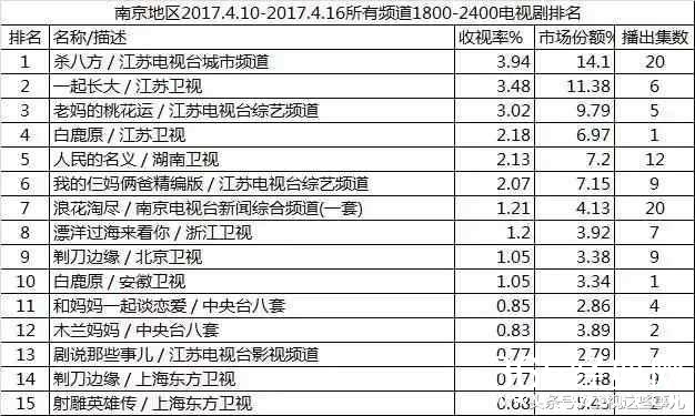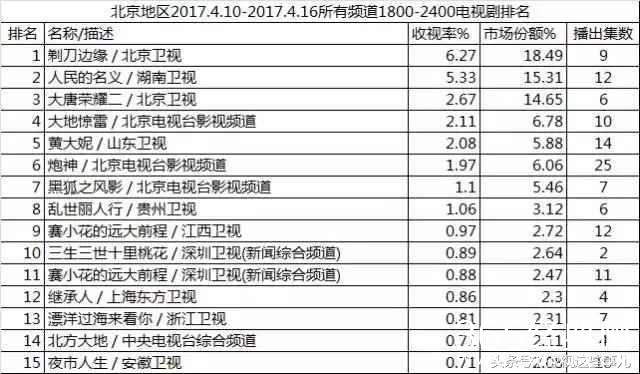 上次有网友嫌地区太多,本周进行精选,五个城市,每地前十五名,虽然原始数据为前五十名电视剧,但是后面的剧和频道,估计大家兴趣欠奉。