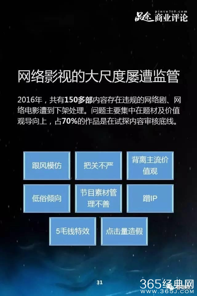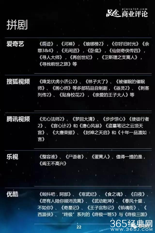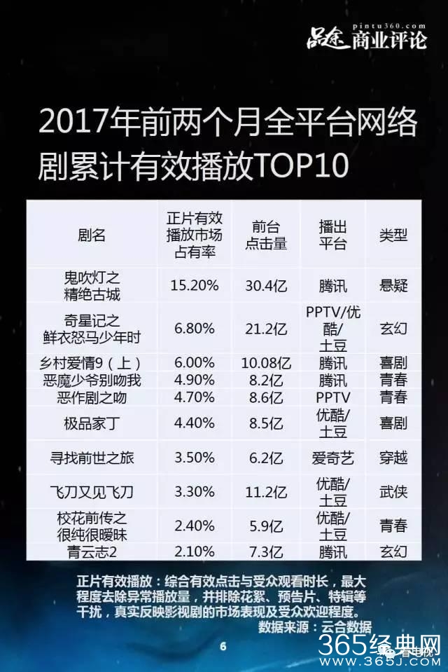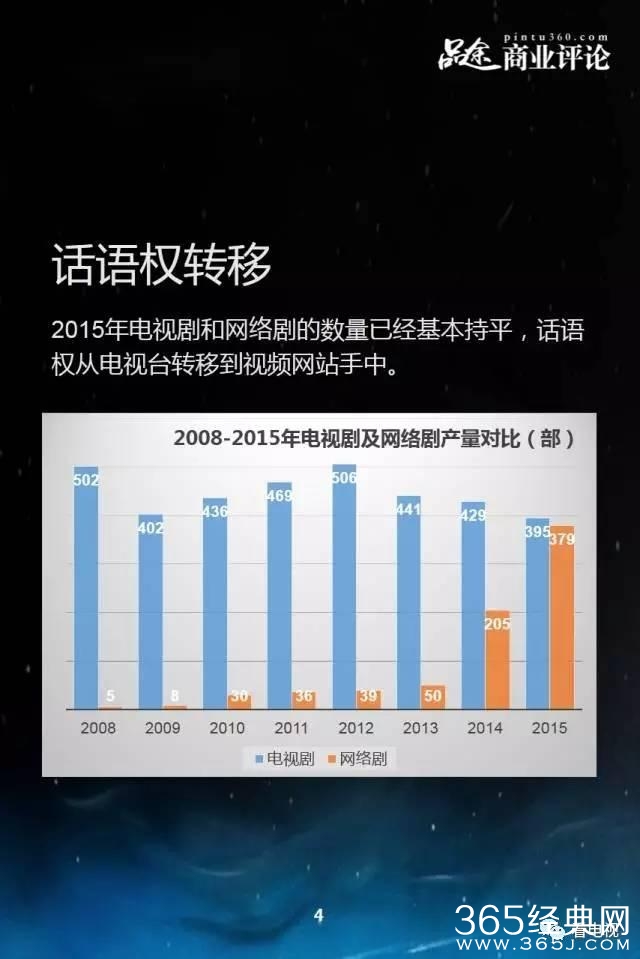视频网站逐渐取代电视台,成为影视综艺内容市场的主导者。网络剧已经开始反哺电视台,成本也追平电视剧。继续用网络剧定义已经不合时宜,网络剧和电视剧的界限愈加模糊,2017年,还将是网络剧的“黄金时代”。