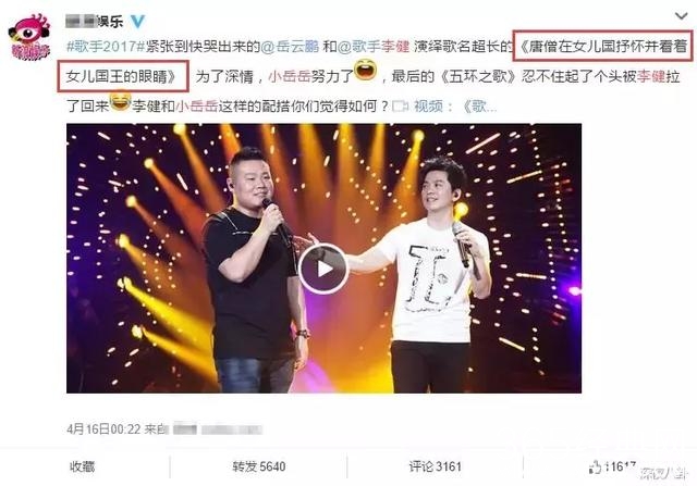 李健和小岳岳的“岳来岳健”组合,凭借一首《唐僧在女儿国抒怀并看着女儿国王的眼睛》力压歌王林忆莲上了热搜。