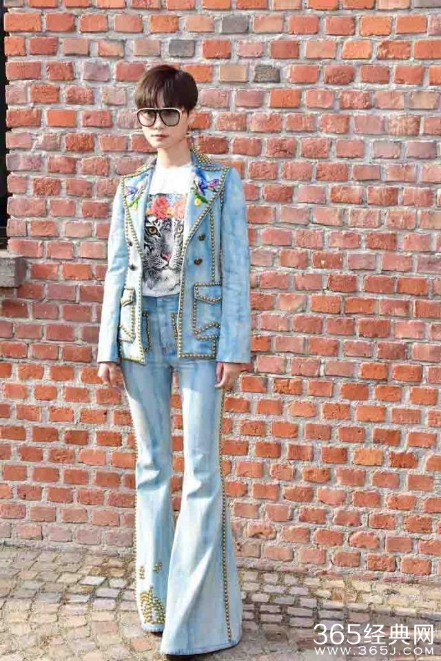 这款Gucci 2017春夏系列铆钉牛仔套装,被李宇春穿出了自己的特色。