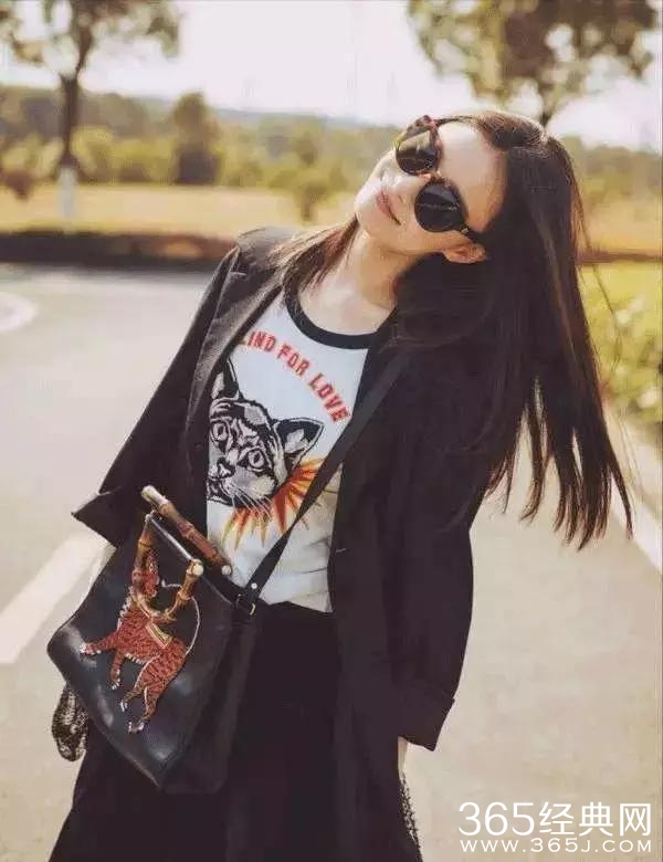 “blind of love”猫咪T恤,是Gucci主打的重点,小猫咪图案穿在倪妮身上,帅气又可爱呢。