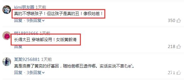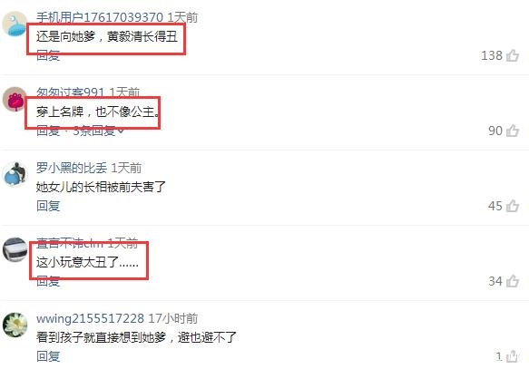 现在女儿长大了,长相变化不大,还是长得更像爸爸黄毅清一些,网友们又开始骂了:穿上一身名牌,也不像公主,还是像他爹,长得太丑了,这小玩意儿太丑了……