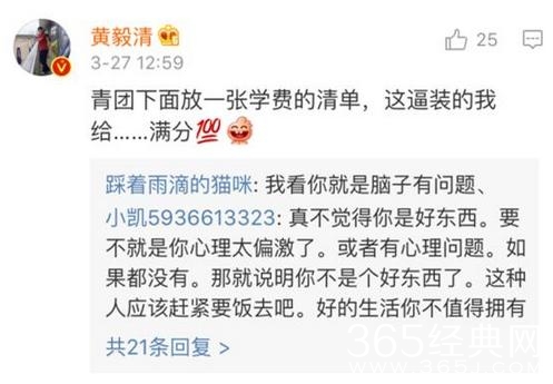黄毅清多次在微博上骂前妻黄奕,黄奕只要在微博上晒女儿的情况,黄毅清都会反击回去,每次都是毫不留情,完全不念一日夫妻百日恩,完全不念是亲生女儿的生母,恶意揣摩黄奕对女儿情感……