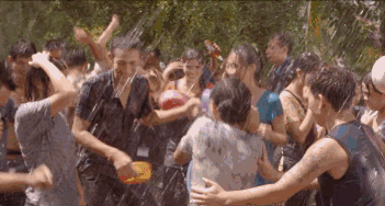 一场欢快的泼水节,工厂的员工每一个都欢歌载舞。