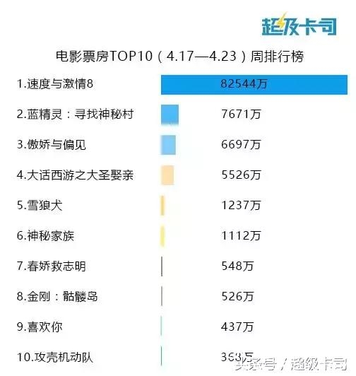 《速8》上映次周卷走了8.25亿票房,总票房成功突破20亿,超过《速7》和《捉妖记》的24亿票房已不成问题。不过,《速8》的票房增速开始放缓,能否继续蝉联周票房榜首并追上《美人鱼》的票房纪录,就要看“五一档”的表现了。