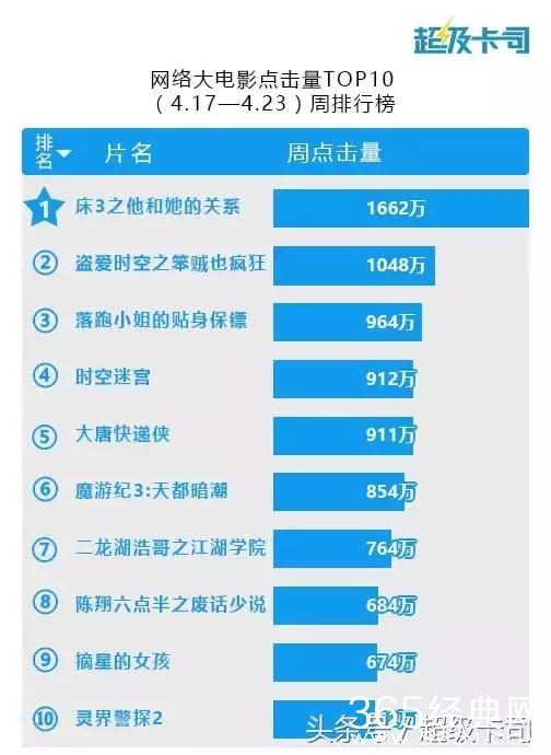 由陈正道导演,包贝尔等人主演的超级网络大电影《床3之他和她的关系》闯入上周榜单第一名。