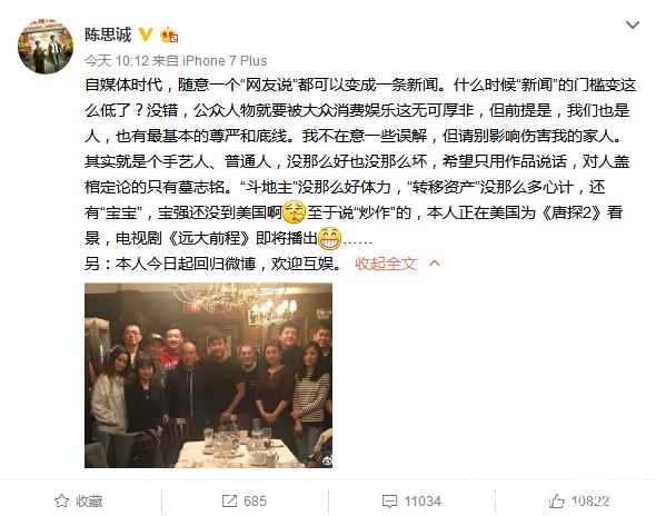 陈思诚也公开回应,大方晒出同桌吃饭的女生合影,显然是《唐人街探案2》的工作人员,此次去美国就是为了电影而已,还是希望用作品说话。