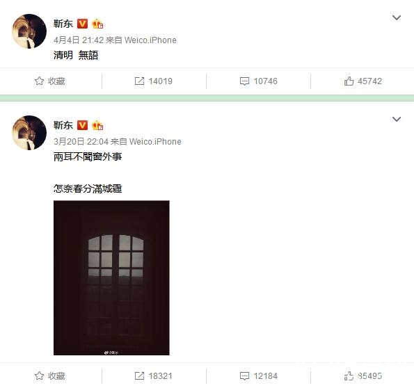靳东出演《伪装者》,他对大哥明楼的演绎入木三分,深得观众的喜爱。但是他一直保持着自己最初的心态,低调淡然,他的微博特别干净,都是生活简单的小确幸,以及节气,还是繁体字的,很文艺青年。