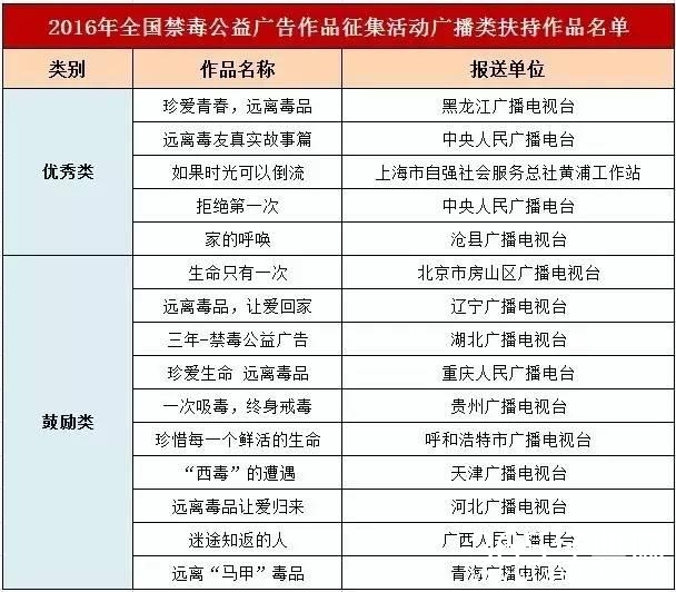 总局公布禁毒公益广告评选结果,扶持优秀类、鼓励类作品30件