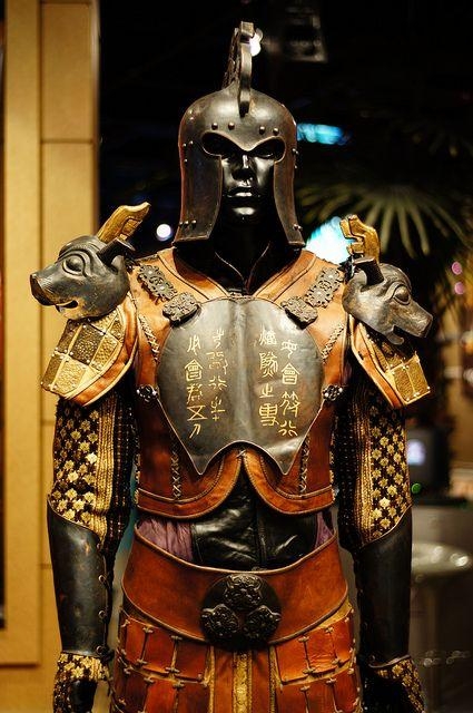 与影视剧表现的不同,下面这个盔甲是用几百,甚至上千片的小甲片制作而成,看上去非常厚重。