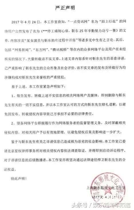 靳东工作室也发声明了,造谣就要负责,会即刻开启诉讼程序。