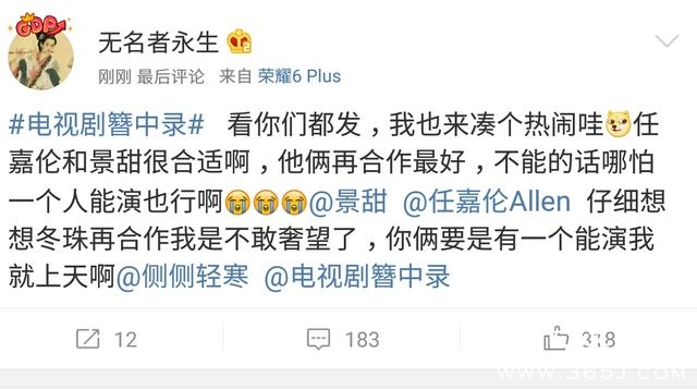 粉丝说,我们偶像任嘉伦马上有新戏要拍,才没时间接新戏呢。也有粉丝说,不好意思,我们也觉得不合适,炒的都不是我们纯粉,你们可以举报。