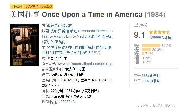 前几天,公社君刚刚回顾了一部经典之作——《美国往事》