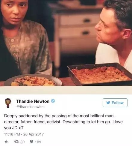 编剧鲍尔·威利蒙,代表作《纸牌屋》,他称自己虽然只与乔纳森合作过一次,但“他就像他的电影那样聪明、充满好奇心和原创性,愿这位真正伟大的电影人安息。”
