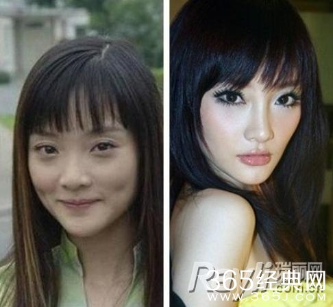 左边绝对是唐唐的黑历史,是她还在申奥时期的大额头亮相,鼻子也没有现在挺。