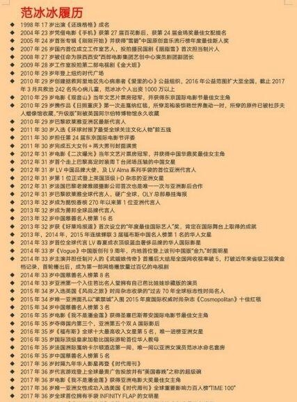 范冰冰的粉丝晒出了范冰冰这些年的成绩单。