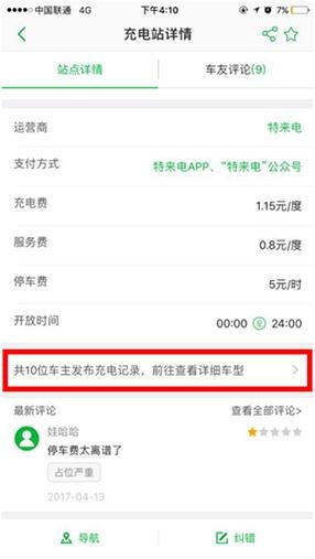 在点击充电站点【详情】-【前往查看详细车型】-【筛选车型】可以查询该充电站每个品牌以及每款车型的充电适配情况。充电结束后点击【共享我的充电记录】可以直接进行本次充电签到,记录充电车型兼容情况。