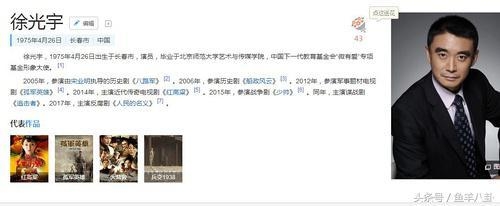徐光宇,1975年4月26日出生于长春市,演员,毕业于北京师范大学艺术与传媒学院,中国下一代教育基金会“微有爱”专项基金形象大使。