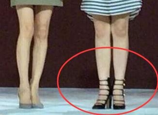 虽然整体看上去林允要比佟丽娅白一点点,但是林允的造型师也是该开除了,偏偏要给林允换上一双绑带的高跟鞋。。。