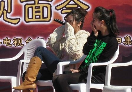 这还是官方放出来的照片呢,看杨幂的腿,又直又白,丫丫就有点太细了,而且皮肤也很暗沉。