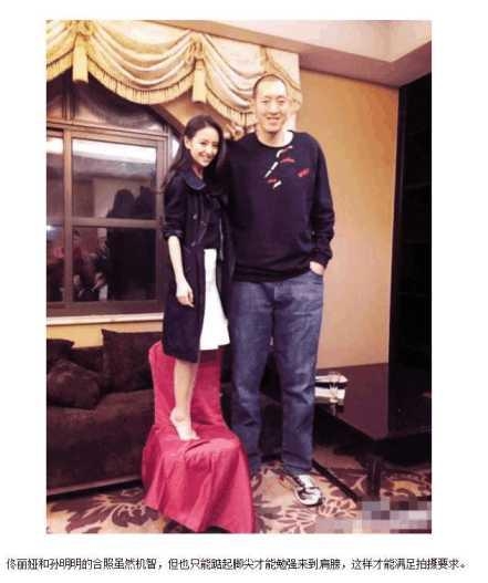 但是有的明星踮脚尖真的是因为拍摄需要啊!(小编曾脑补过和姚明站在一起时的画面,然后就是如果我要上镜,姚明就是背景墙,如果姚明上镜了,就没有我什么事儿了!!!)就像佟丽娅和孙明明要拍个照也是,同个框也不容易啊!