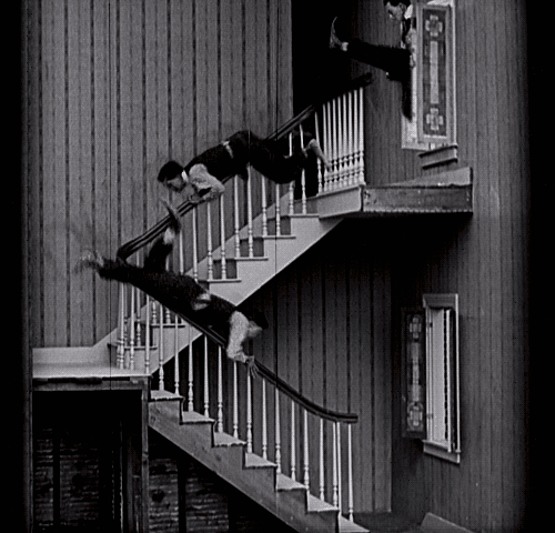 基顿电影中总是有很多令人惊叹不已的特效镜头,很多电影人都会仔细琢磨这些蜜汁特效在1920s究竟是如何拍出来的。那时并没有CG,并没有PS,甚至连电脑都没有。一切都要依赖身体控制和剪辑。基顿聪明的大脑,让他的电影即使在现在看来,也令人拍案叫绝,充满着高级的幽默感。丰富的电影语言,卓越的调度能力,基顿留给后世创作者的启发,是难以估量的。