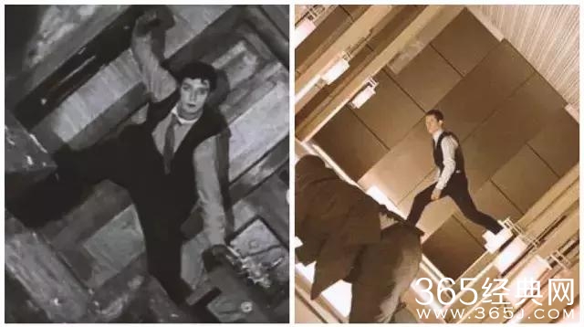 再比如,成龙跳跃飞车的段落也是在致敬基顿。基顿讲求肢体动作与道具间的连锁反应,所产生的无法预见的结果。与成龙的传统风格一样,基顿所演的人物也是普通人,但他是冷面笑匠——面部缺乏表情,思想与行动的协调全表现在眼神上。