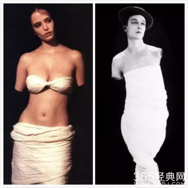贝纳尔多·贝托鲁奇在《戏梦巴黎》里也是对巴斯特基顿大加赞赏,有一个桥段是用黑布缠住伊娃格林的手臂,站在黑色背景里,模仿断臂的维纳斯。这个桥段就是基顿玩剩下的。