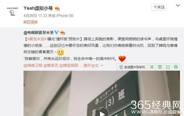 郑爽的新剧《夏至未至》预告片出来了,发现郑爽的演技和在“微微”里的演技不同,简直提升了一个档次,比以前更专注、投入和走心,很有天赋,继续学习下去很有可能成为实力派演员。
